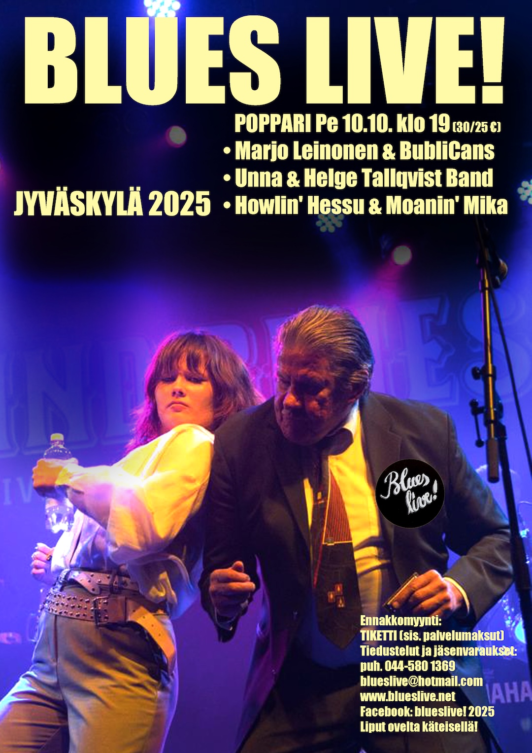 Tiedustelut ja Blues Live ry:n jäsenhintaisten lippujen (25€) varaukset: