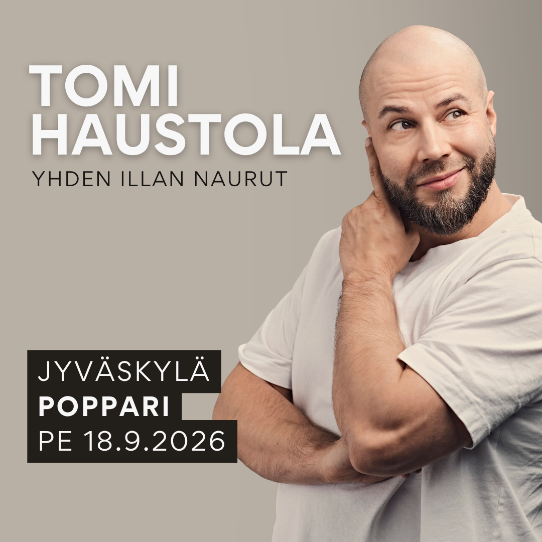 DESCRIPTION:Price: Lippu.fi 26€ / 23€. Notes: <br><br>  <img src="http://ravintolapoppari.fi/wp-content/uploads/Yhden-illan-naurut-Jyvaskyla-1080-x-1080-px.png">  <br><br>  Yhden illan naurut on TV:stä ja TikTokista tutun stand up -koomikko Tomi Haustolan kokoillan show\, jossa nauretaan sekä itselle että maailmalle.  <br><br>  Stand up show’ta on rakennettu pandemian alusta lähtien: 9 vuoden suhteen eron keskeltä ja kolmikymppisyyden lopusta\, joten tässä esityksessä kyytiä saavat niin riisikakut kuin robotti-imuritkin.  <br><br>  Show’ssa mietitään\, millaista on yrittää pysyä kyydissä alati muuttuvassa maailmassa\, kun etäpalaverissa mikki jää vahingossa päälle\, treffeillä tavoite on käydä S-ryhmän paikoissa\, jotta käteen jää edes bonuksia\, ja riisikakkua saa kutsua kakuksi\, vaikka sehän ei jumankauta ole mikään kakku!  <br><br>  Tomille tyypilliseen tapaan jokainen esitys on hauskasti oman näköisensä\, joten tule nauramaan ja nauttimaan Poppariin ainutlaatuisesta keikasta!  <br><br>  Tomi on esiintynyt niin Nelosen Stand up\, Naurun Tasapaino kuin Noin Viikon Studio -ohjelmissa sekä vieraillut lukuisissa muissa. Tämän lisäksi hän on käsikirjoittanut mm. Noin Viikon Uutisia\, Suurmestaria ja Stadi vs. Landea.  <br><br>  Tomi Haustola – Yhden illat naurut (K-18)<br>  Poppari\, Jyväskylä<br>  Pe 18.9.2026<br>  Showtime klo 18\, ovet klo 17<br>  Liput: <a href="https://www.lippu.fi/event/tomi-haustola-yhden-illan-naurut-k-18-ravintola-poppari-21537495/">Lippu.fi</a>  <br><br>  Esitys voidaan taltioida ja materiaalia esittää esimerkiksi sosiaalisessa mediassa. Esityksen valokuvaaminen on sallittu ja videokuvaaminen kielletty. Saavuthan ajoissa\, sillä myöhässä tulijoille ei voida taata pääsyä keikalle. Mahdollinen eteispalvelumaksu ei kuulu lipun hintaan.